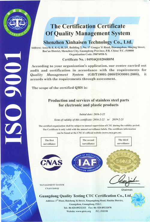 深圳市鑫海森科技有限公司成立于2006年,坐落于中國廣東省深圳市沙井鎮(zhèn),地理位置優(yōu)越,對于我司原物料采購及協作加工有無法比擬的迅速性和高品質性。 我司主要進行精密五金件的加工,產品涉及的范圍相當廣泛,涵蓋了通訊、聲學、光學、醫(yī)療、安防、機械、航空、陸運工具、家電等等領域。本公司目前產能1000^2全自動生產線6條。加工厚度從0.02mm-1.5mm產品的精度可以做到... 【查看詳情】
